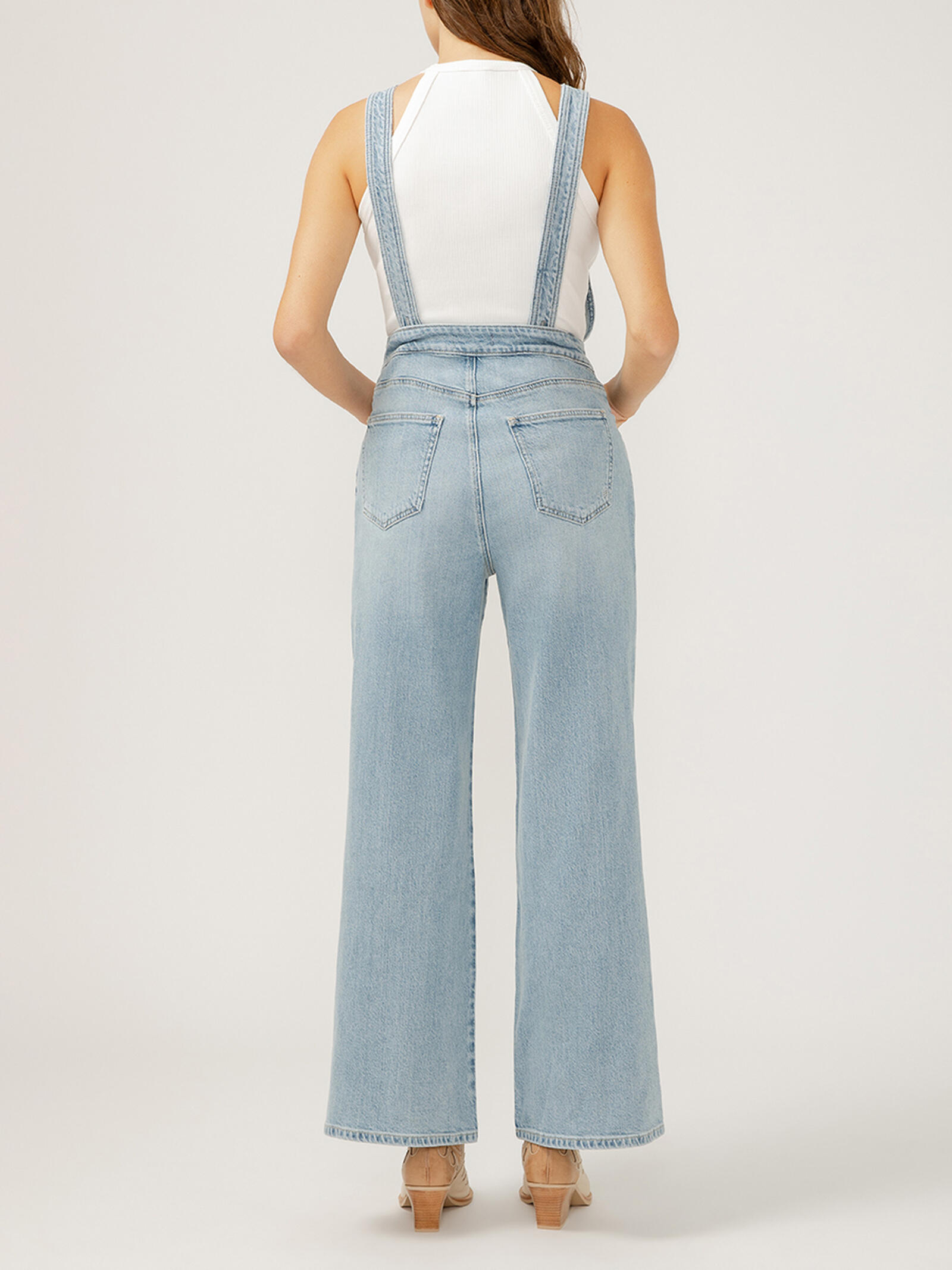 Updated marketing description: Elevate your denim game with on-trend wide leg denim overalls that have just enough stretch. With a mid rise, classic bib pocket, and adjustable back buttons that let you wear the straps straight, crossed, or however you want, these bring more variety to your everyday lineup.