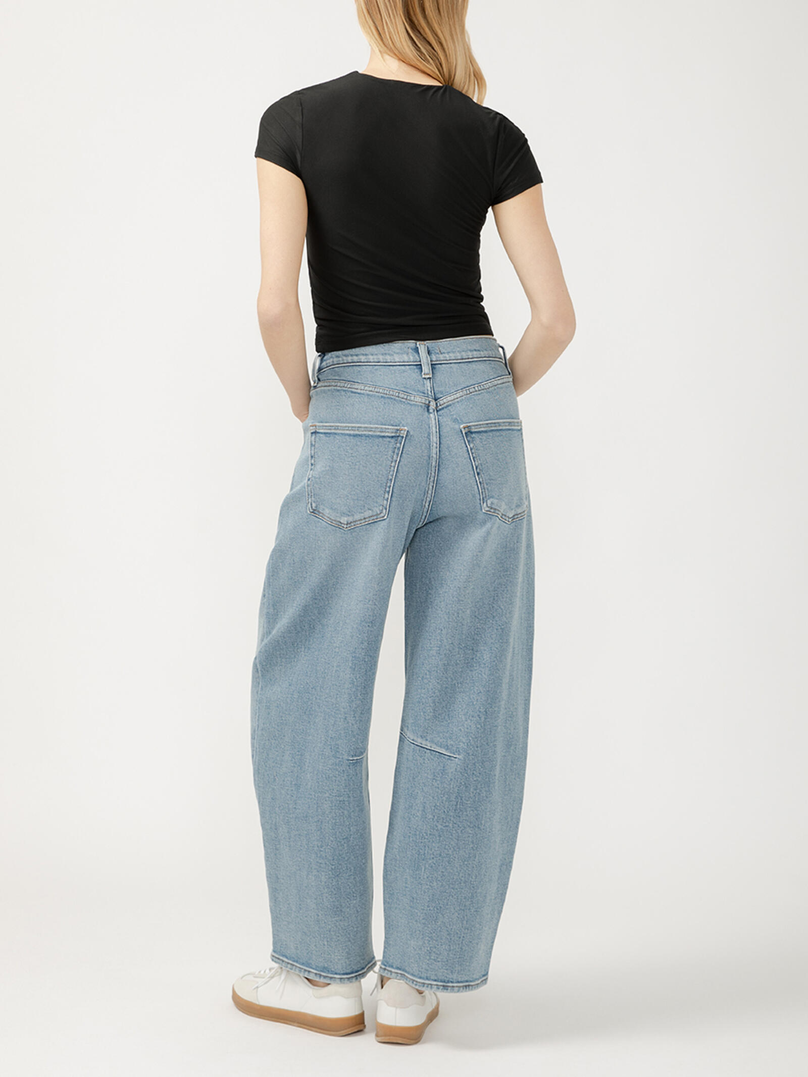 Our high rise barrel leg jeans are the perfect blend of structure and ease. With their relaxed, roomy fit and on-trend wash, they bring effortless style to any outfit. Whether you're dressing them up or keeping it casual, these are a pair you'll keep reaching for.