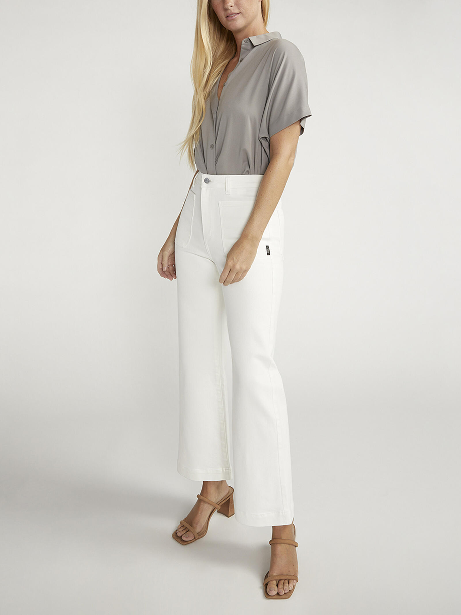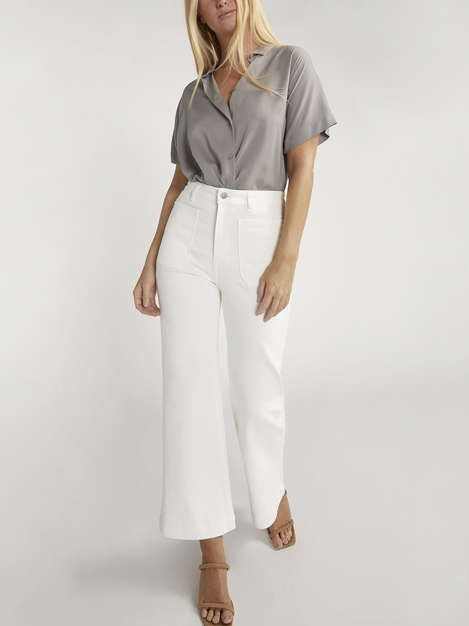 Add a pop of white to your wardrobe with 90's inspired wide legs. Slim fitting with a high rise, and just stretchy enough, without losing structure. Comfy, flattering, and super fresh with vintage-inspired patch pockets. These will brighten up any day.