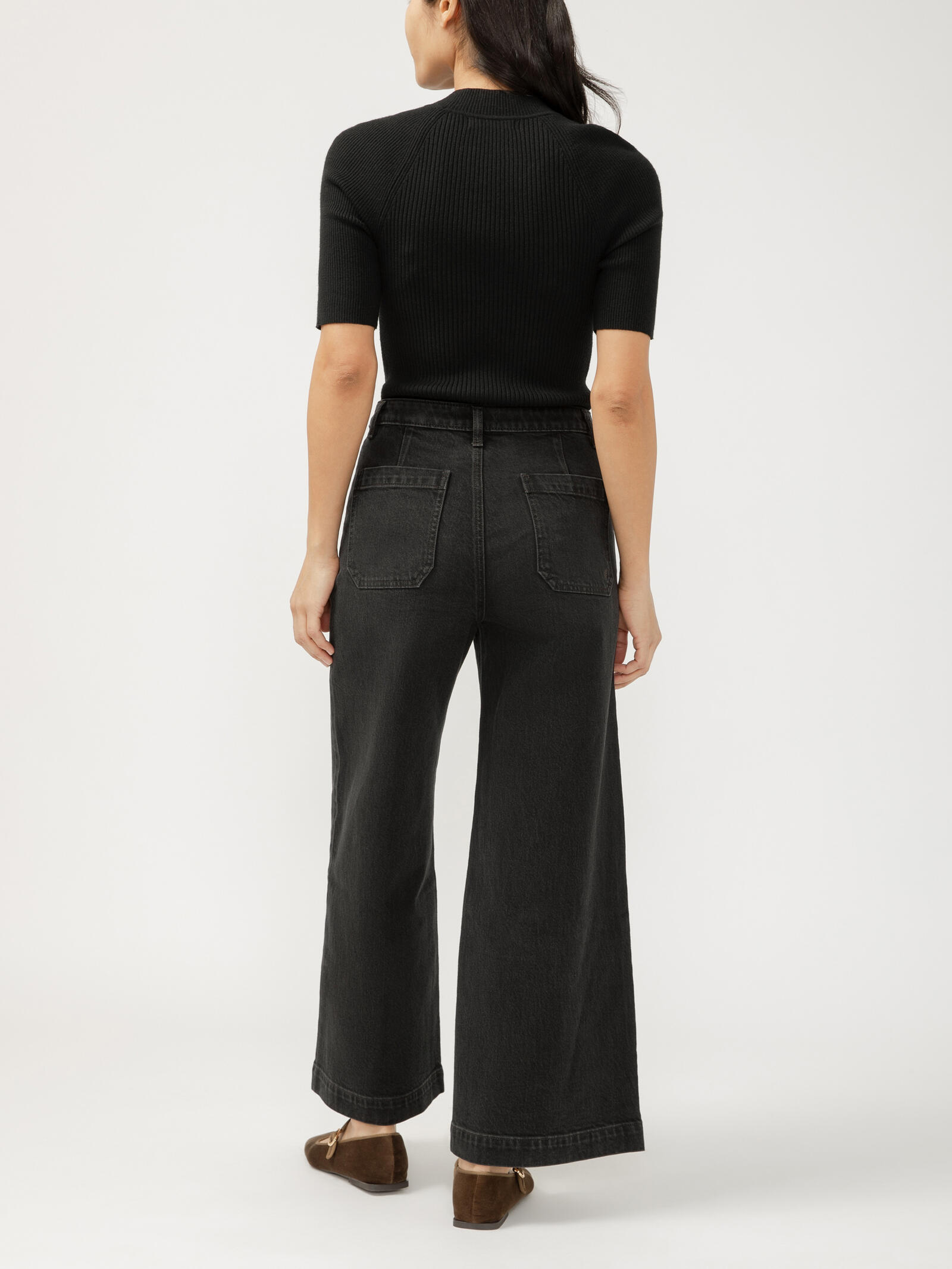 Channel the 90s in a vintage-fit high rise that you can dress up or down with ease. Featuring cropped ultra-wide legs, perfectly-placed patch pockets, and black denim that goes with everything. This is a pair you’ll be wearing on repeat year-round.