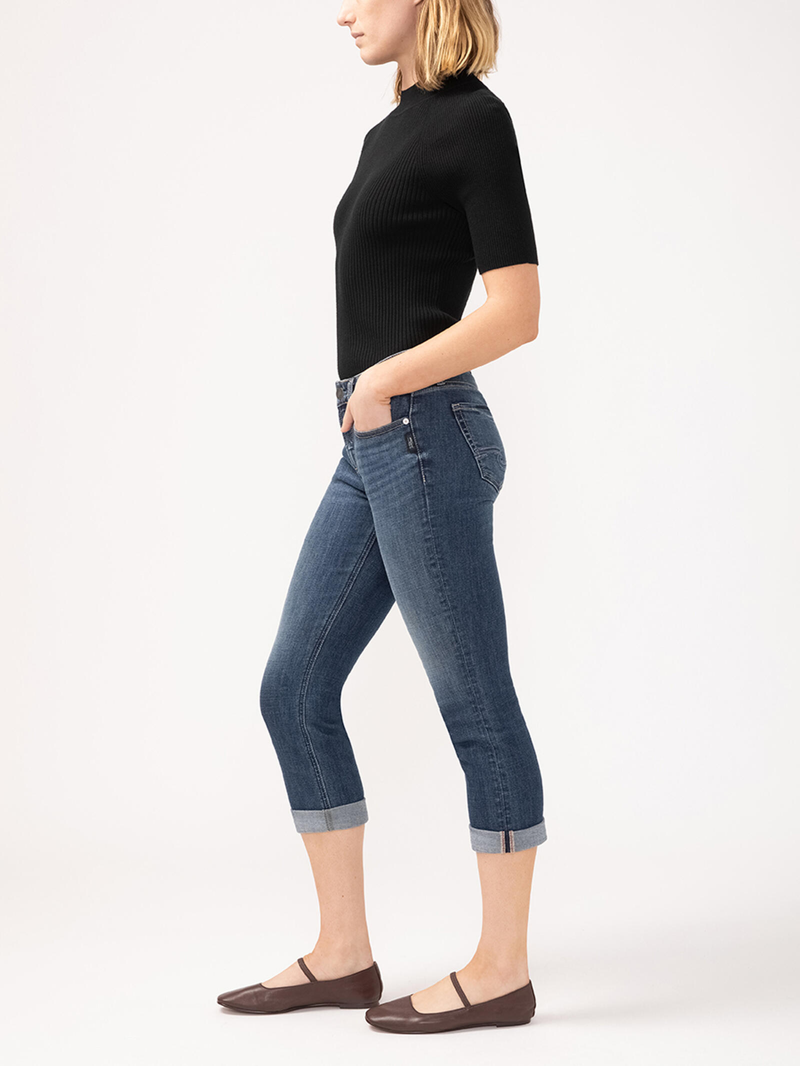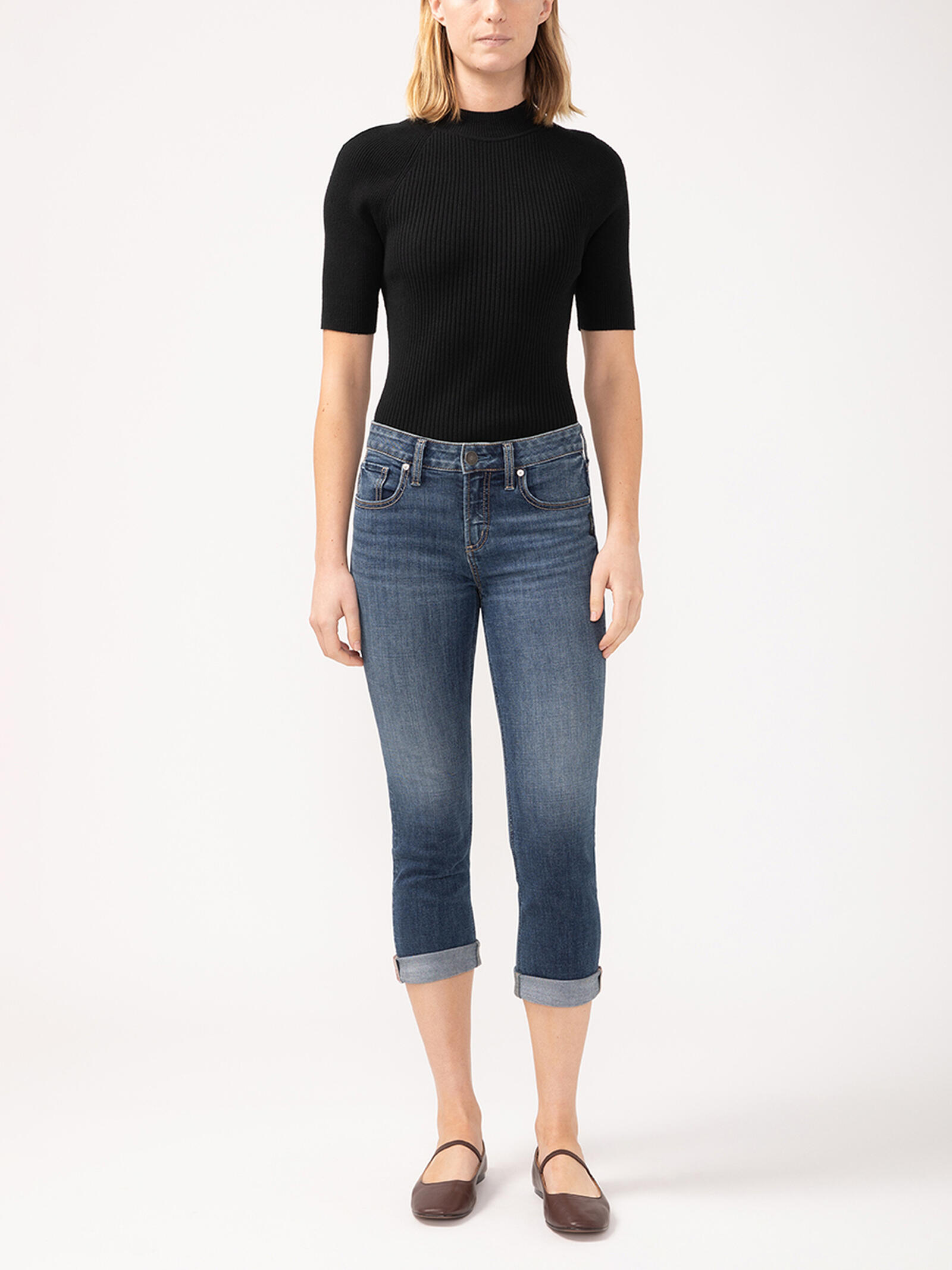 Rated 5 out of 5 by from Curvy petite Finally! Curvy petite jeans that fit. I actually wear the Capri unrolled as ankle jeans. These are some of the few that fit in the seat and thighs without a waist gap. Thank you, Silver!