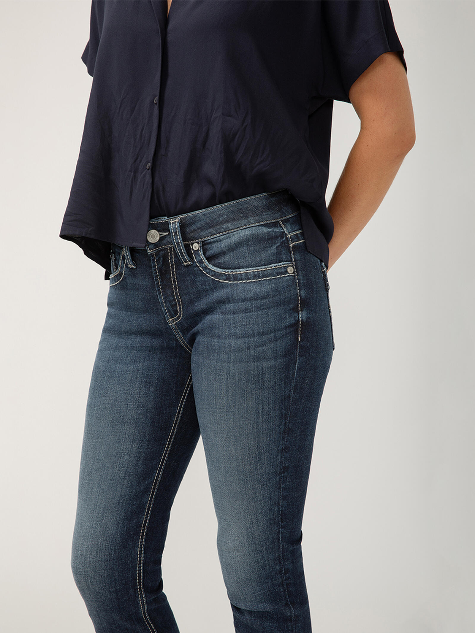 Suki is the best-selling Silver Jeans Co.™ curvy fit for good reason. Designed to enhance curves, this pair creates a flattering silhouette with ease in the hip and thigh to hug every angle. The classic mid rise is comfortable, and the contoured waistband ensures a zero-gap fit.