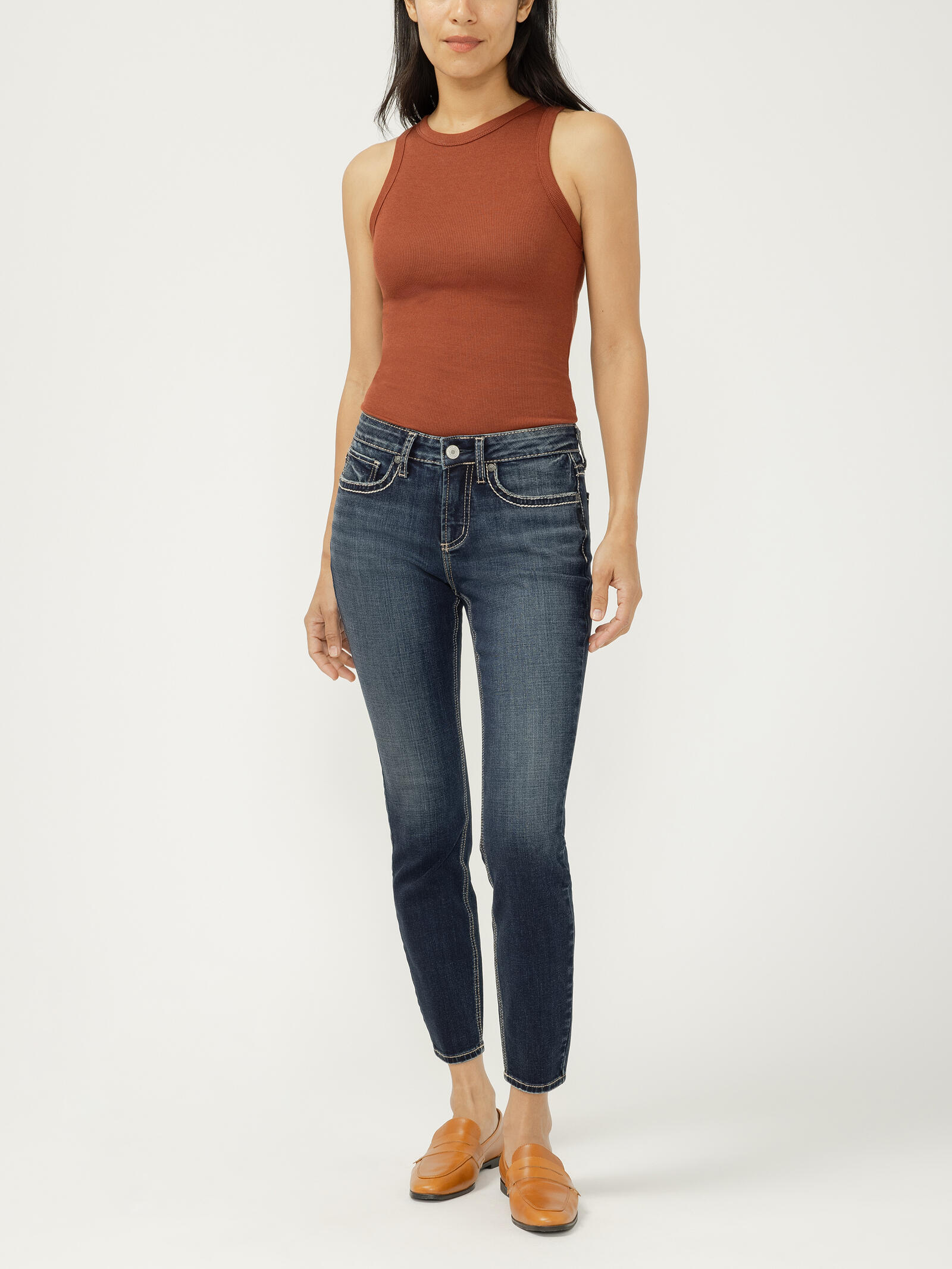 Suki is the best-selling Silver Jeans Co.™ curvy fit for good reason. Made with Luxe Stretch denim and designed to enhance curves, this fit creates a flattering silhouette with ease in the hip and thigh. The classic mid rise is comfortable, and the contoured waistband ensures a zero-gap fit.