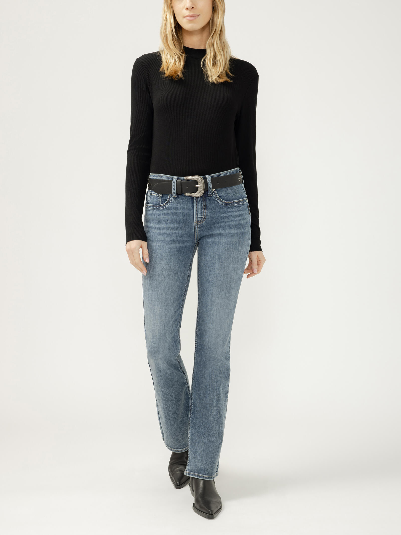 Suki is the best-selling Silver Jeans Co.™ curvy fit jean for good reason. Designed to enhance curves, these women’s mid rise jeans create a flattering silhouette with ease in the hip and thigh. The classic mid rise is comfortable, and the contoured waistband ensures a zero-gap fit.