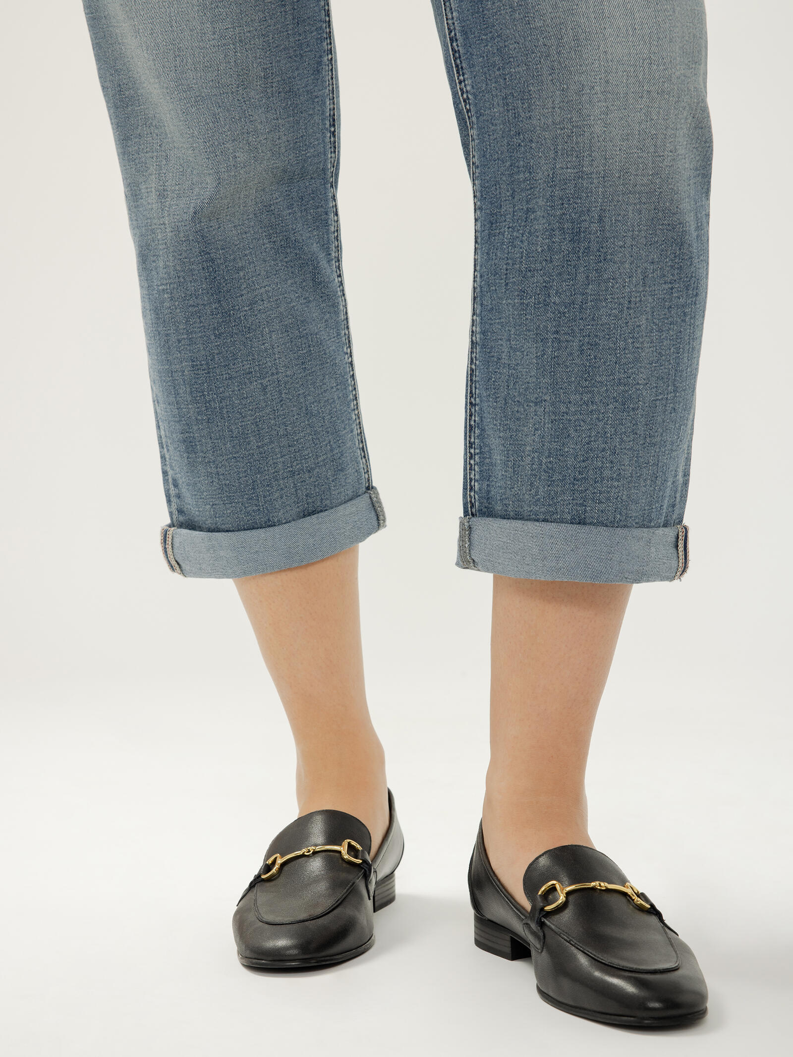 • Capri jeans in a medium indigo wash
