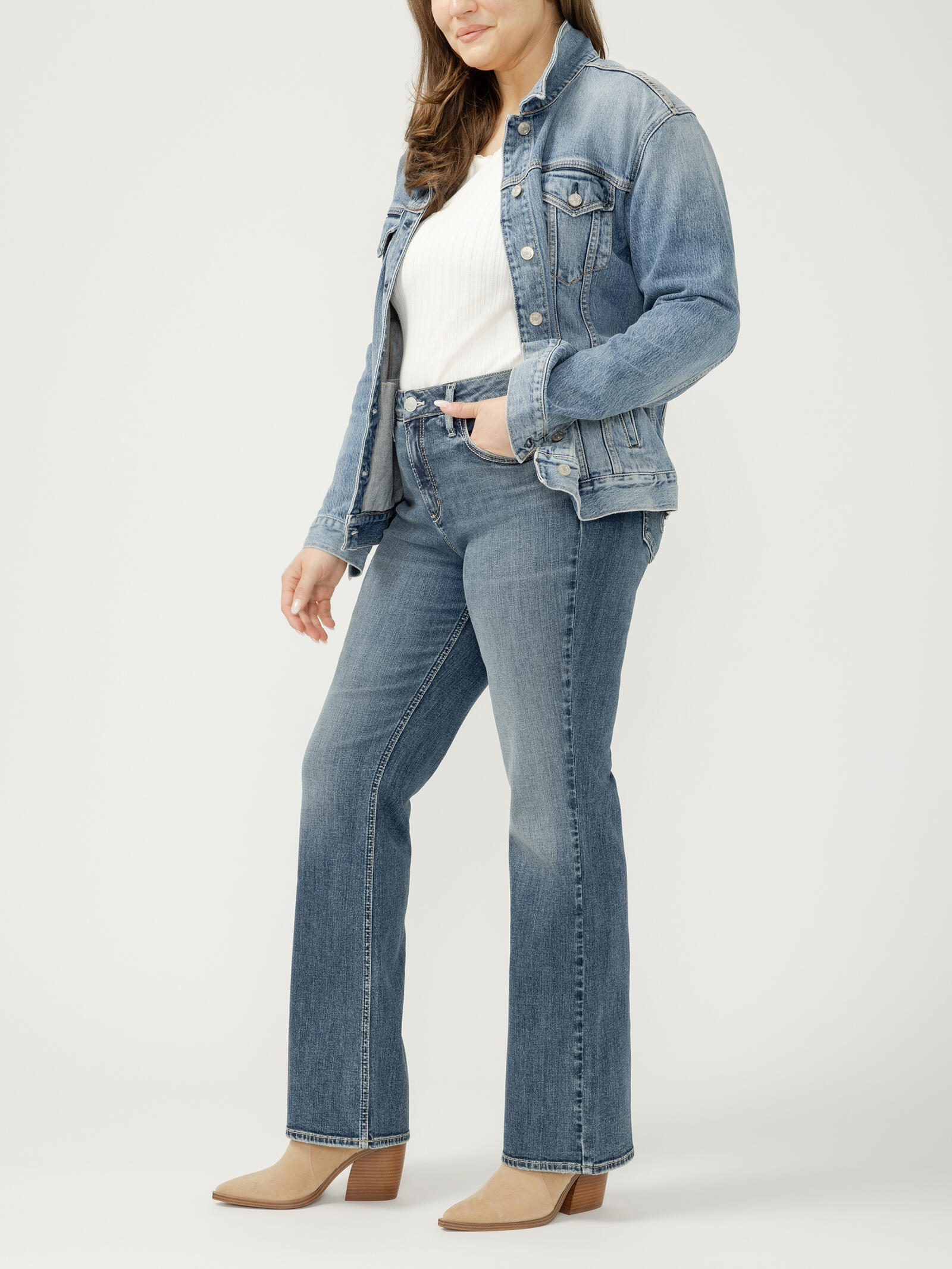 Suki is the best-selling Silver Jeans Co.™ curvy fit jean for good reason. Designed to enhance curves, these women’s mid rise jeans create a flattering silhouette with ease in the hip and thigh. The classic mid rise is comfortable, and the contoured waistband ensures a zero-gap fit.